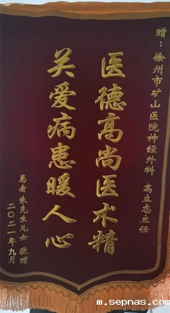 近日,患者朱先生的家人带着两面锦旗来到华润医疗徐州市矿山医院神经外科,感谢高立志主任、尹志强医生及全体医护人员对脑出血患者朱先生的及时救治和精心护理,成功挽救了他的生命。